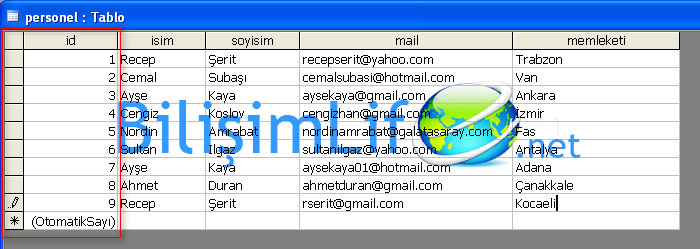 Aşağıdaki resimde kişilerin primary key’leri bulunuyor.